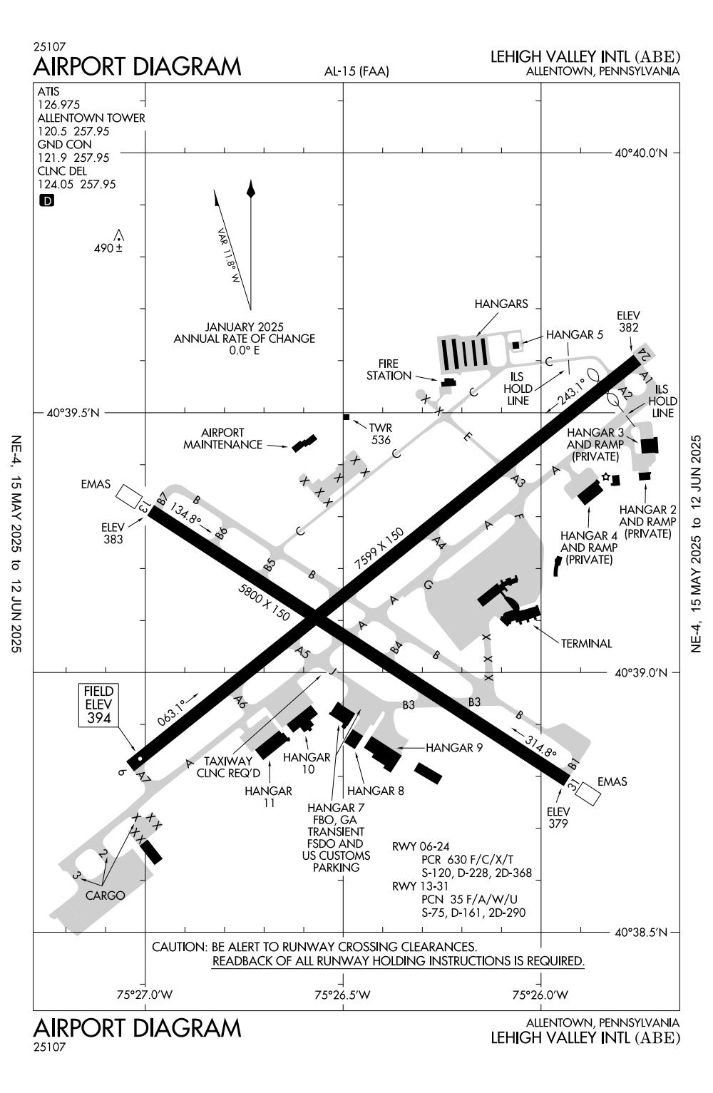 ICAO - KABE, IATA - ABE, FAA ID - ABE