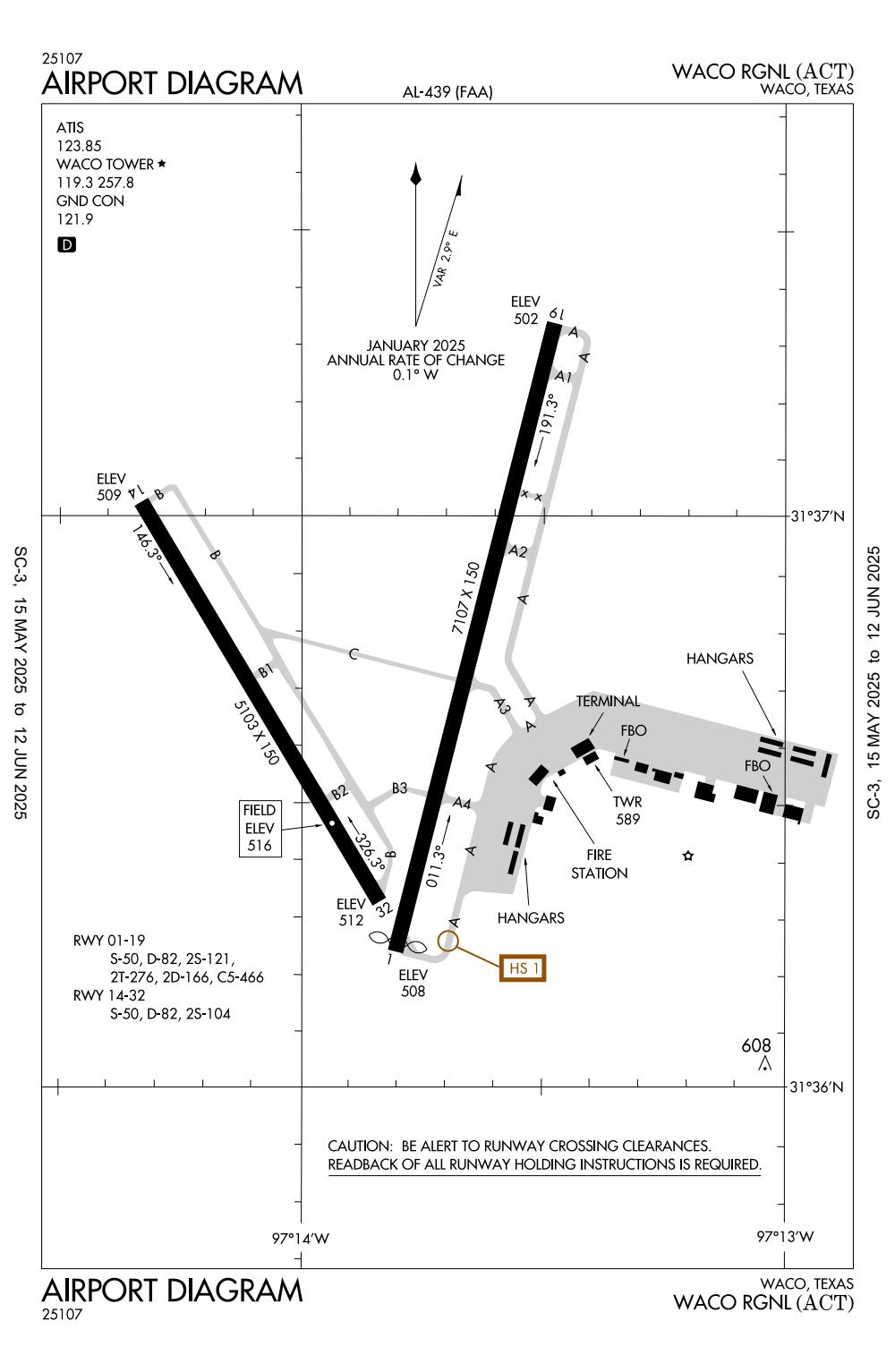 ICAO - KACT, IATA - ACT, FAA ID - ACT