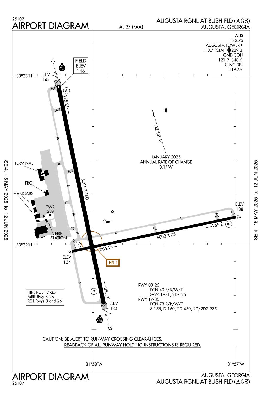 ICAO - KAGS, IATA - AGS, FAA ID - AGS