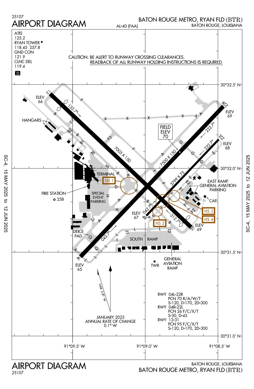 ICAO - KBTR, IATA - BTR, FAA ID - BTR