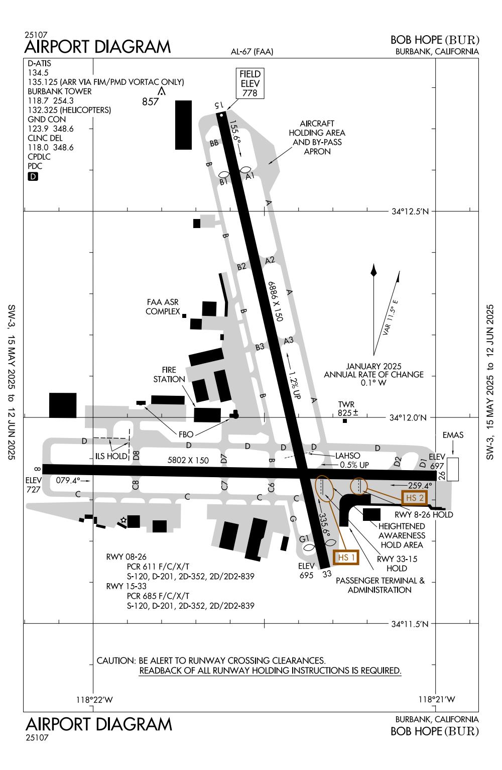 ICAO - KBUR, IATA - BUR, FAA ID - BUR