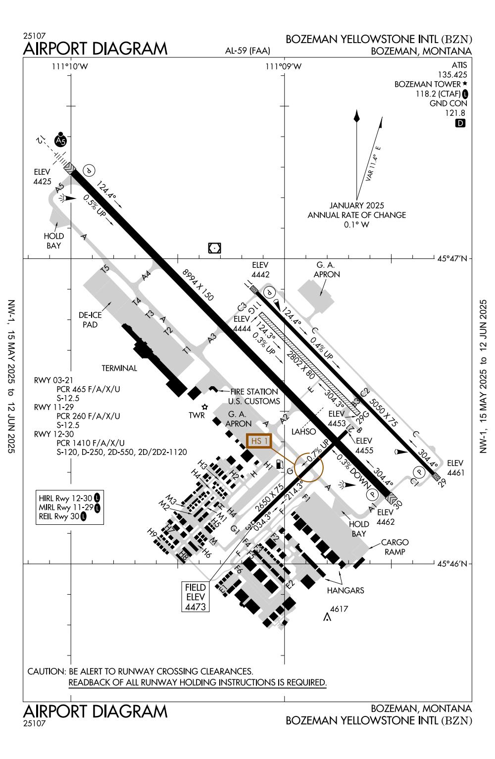 ICAO - KBZN, IATA - BZN, FAA ID - BZN