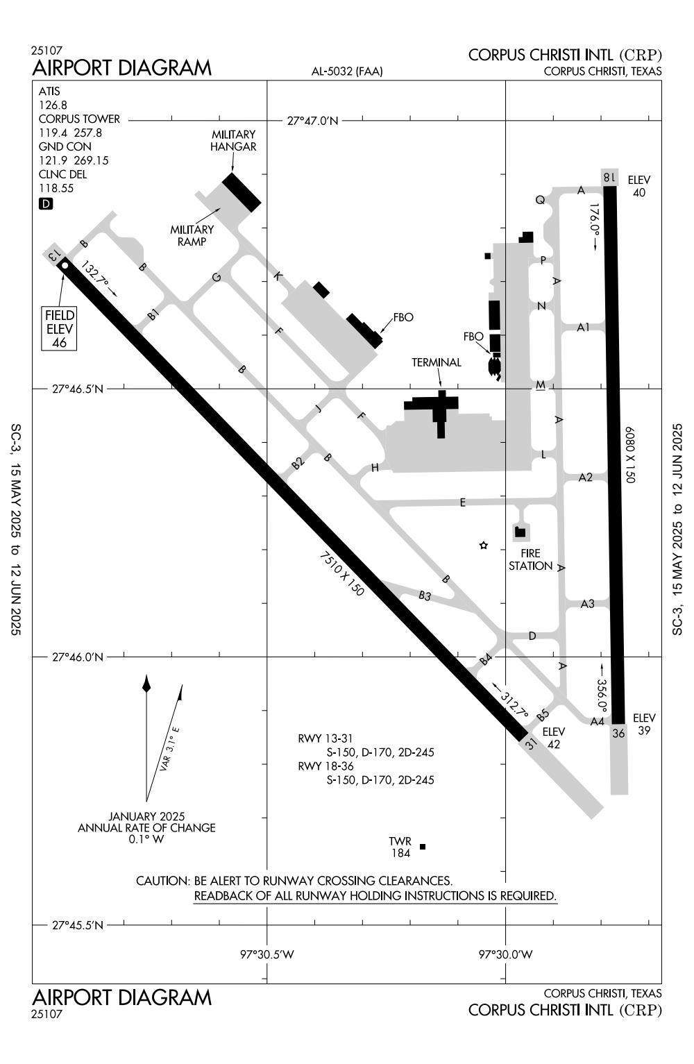 ICAO - KCRP, IATA - CRP, FAA ID - CRP