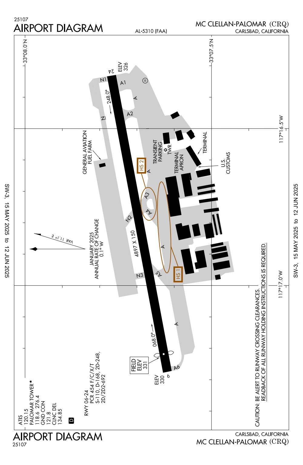 ICAO - KCRQ, IATA - CLD, FAA ID - CRQ