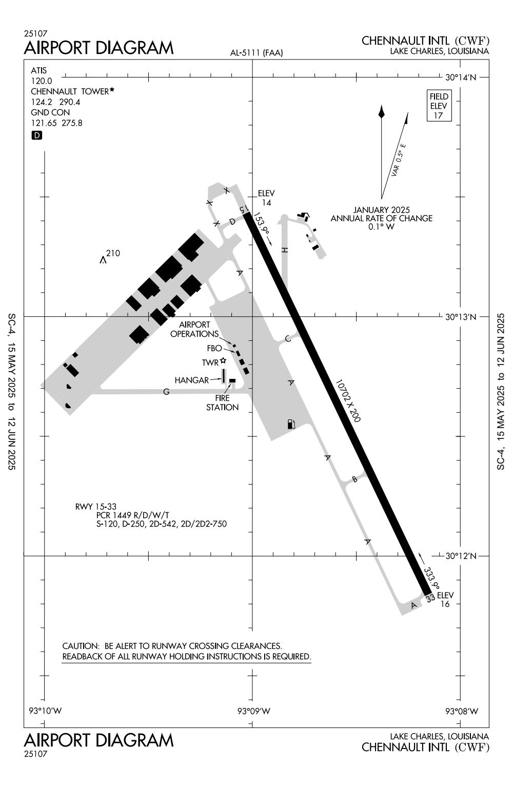 ICAO - KCWF, IATA - CWF, FAA ID - CWF