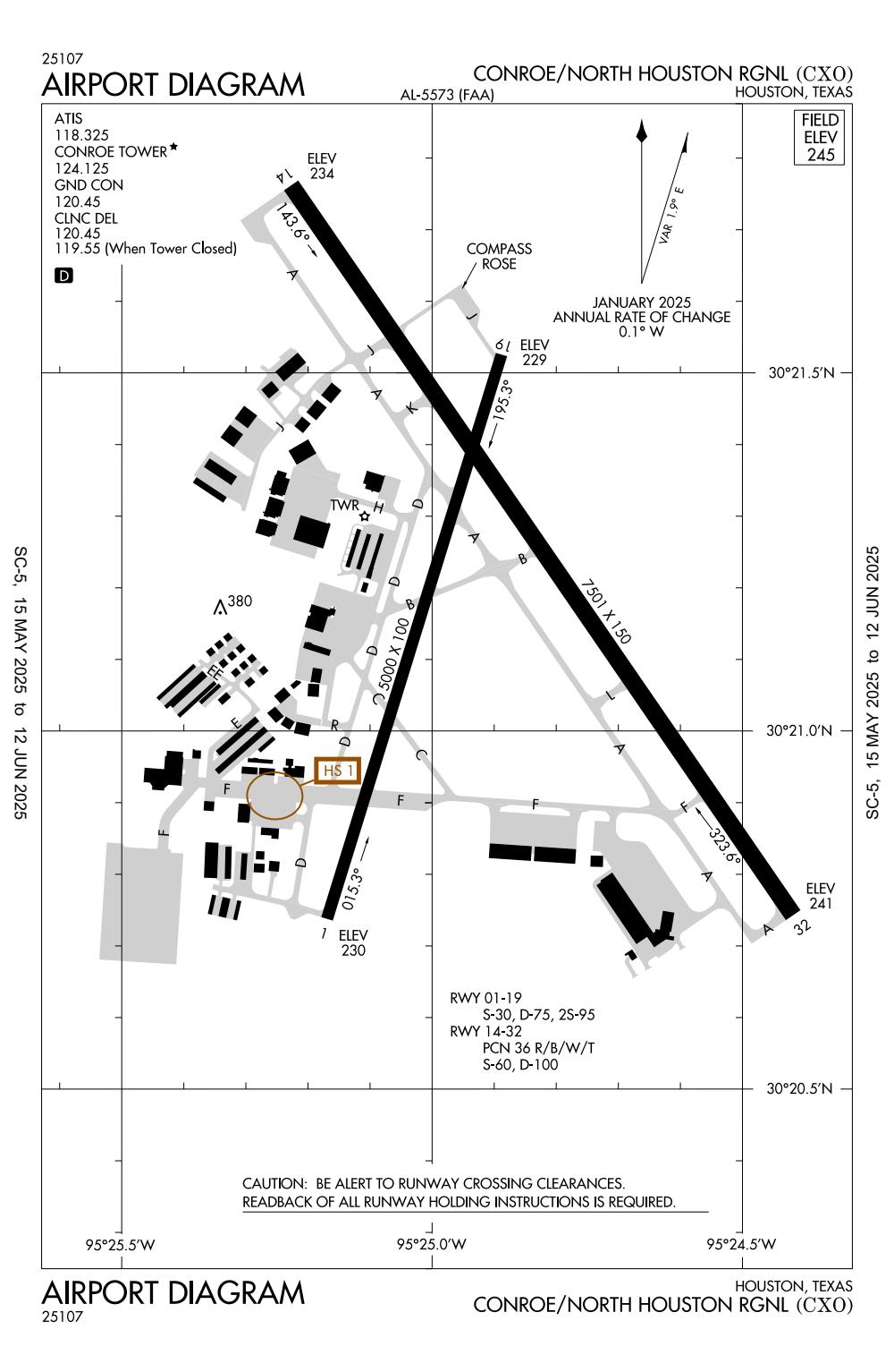 ICAO - KCXO, IATA - CXO, FAA ID - CXO