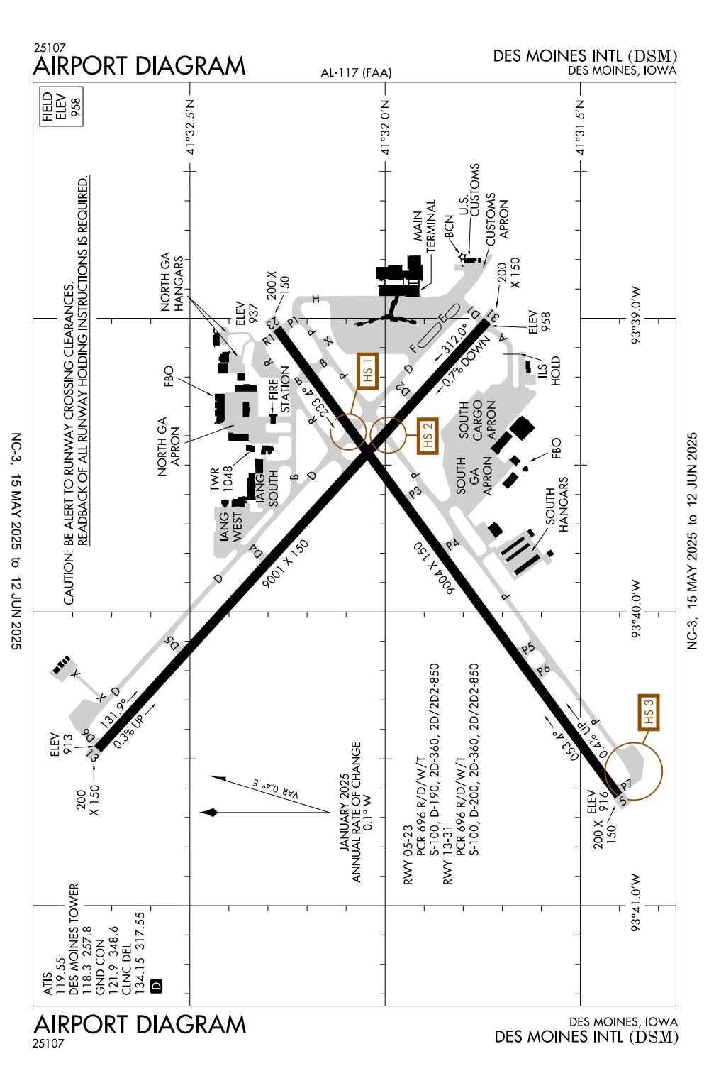 ICAO - KDSM, IATA - DSM, FAA ID - DSM