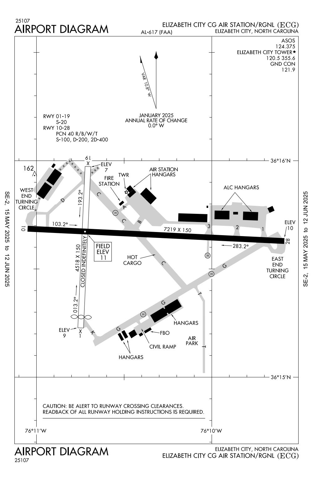 ICAO - KECG, IATA - ECG, FAA ID - ECG