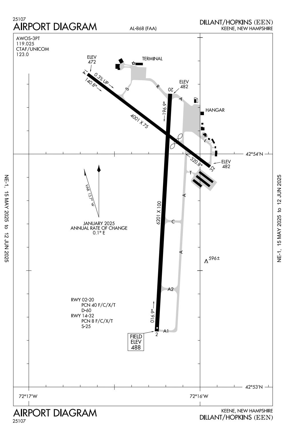 ICAO - KEEN, IATA - EEN, FAA ID - EEN