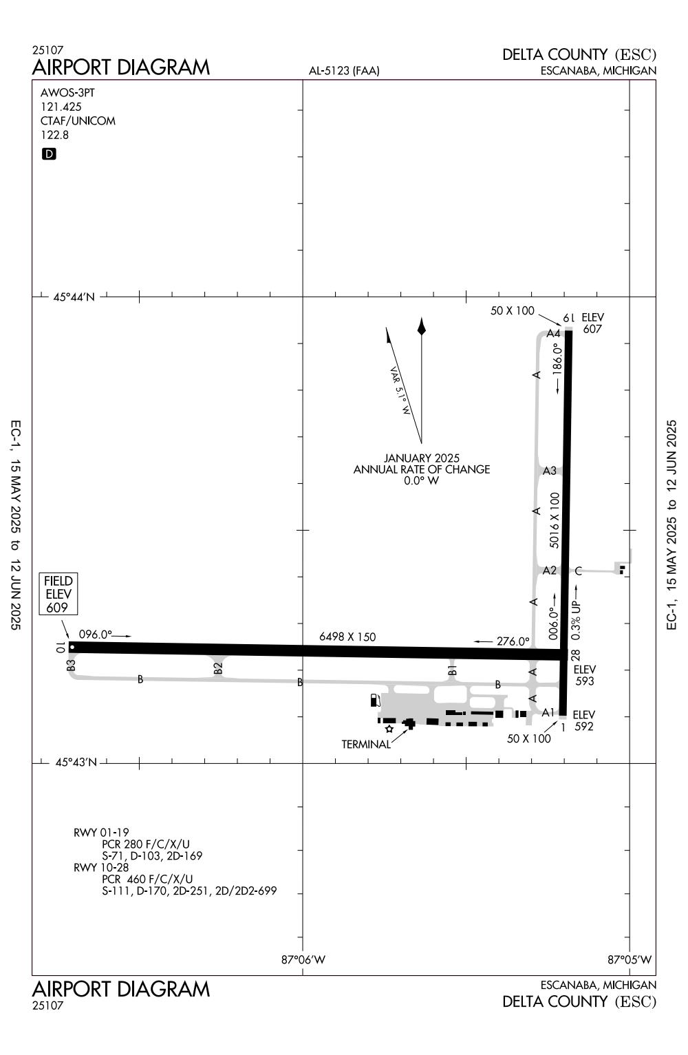 ICAO - KESC, IATA - ESC, FAA ID - ESC