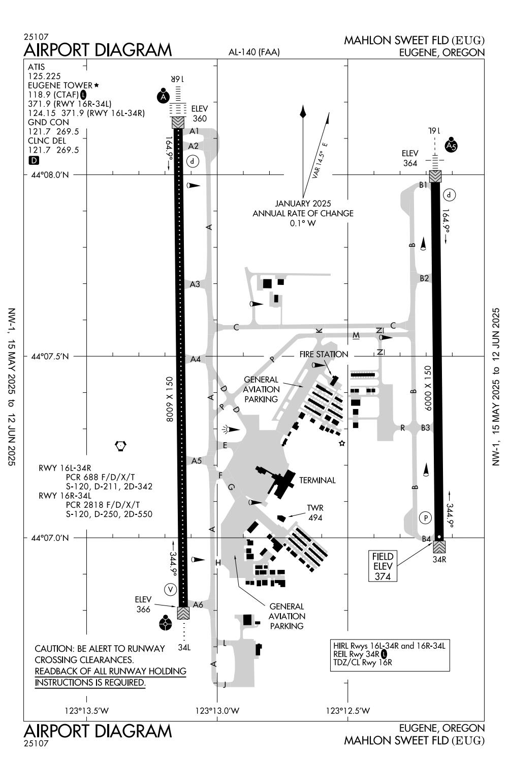 ICAO - KEUG, IATA - EUG, FAA ID - EUG