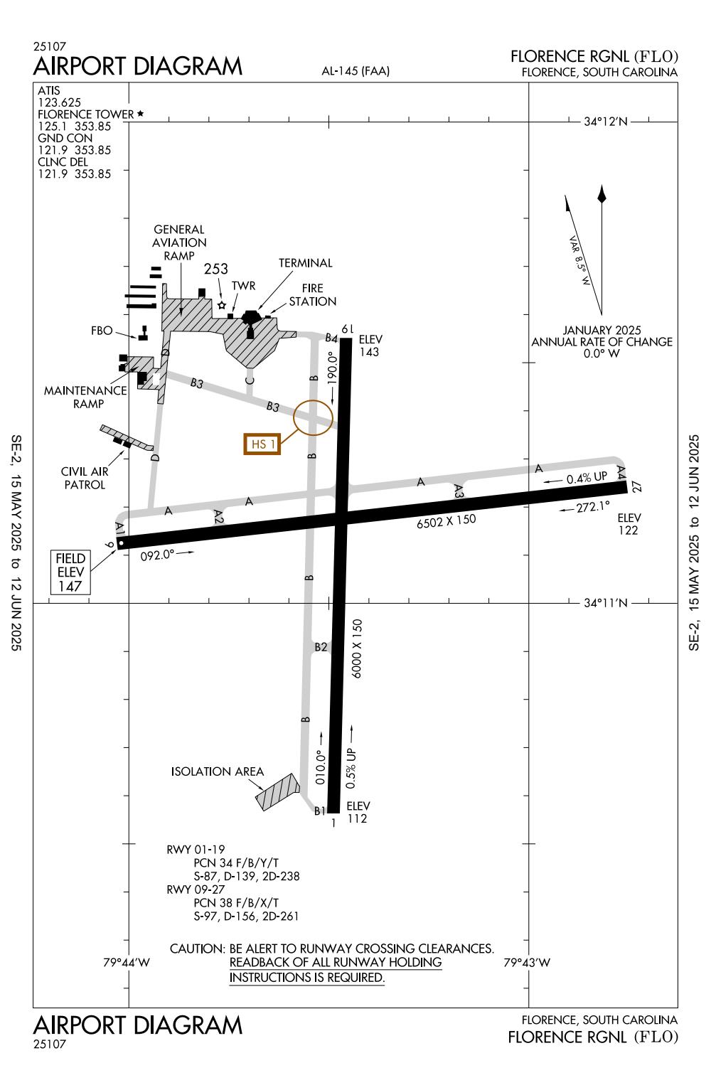 ICAO - KFLO, IATA - FLO, FAA ID - FLO