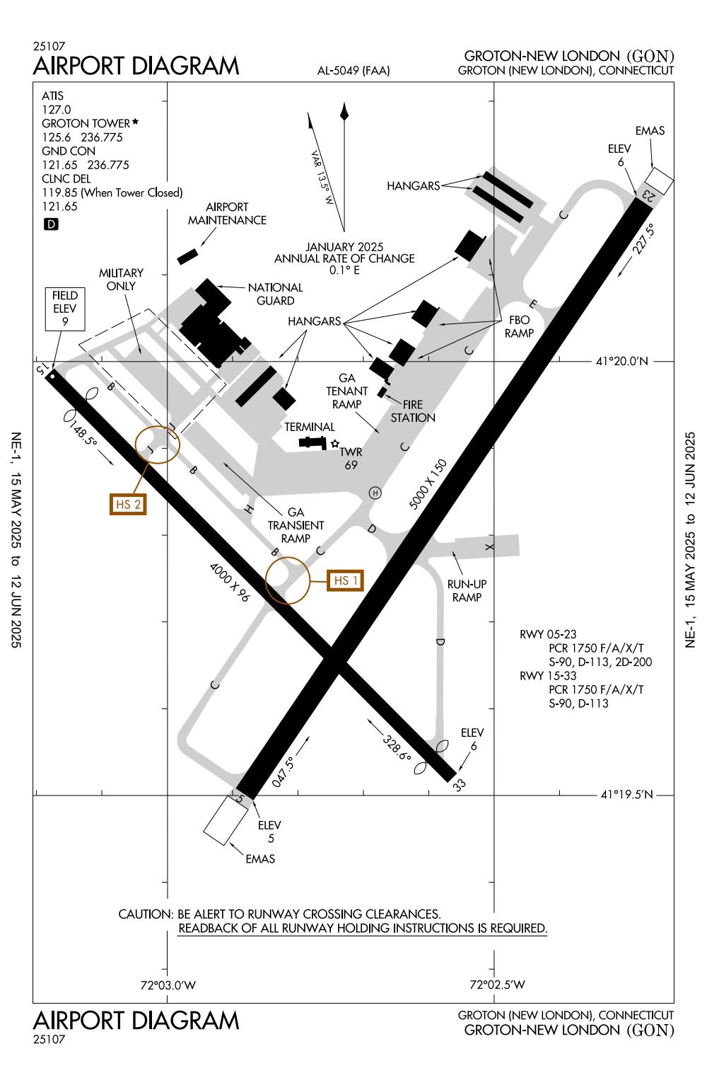 ICAO - KGON, IATA - GON, FAA ID - GON