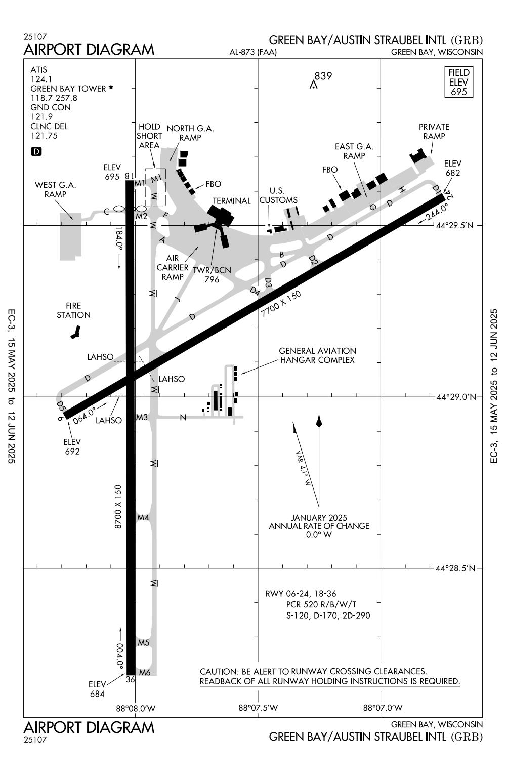 ICAO - KGRB, IATA - GRB, FAA ID - GRB