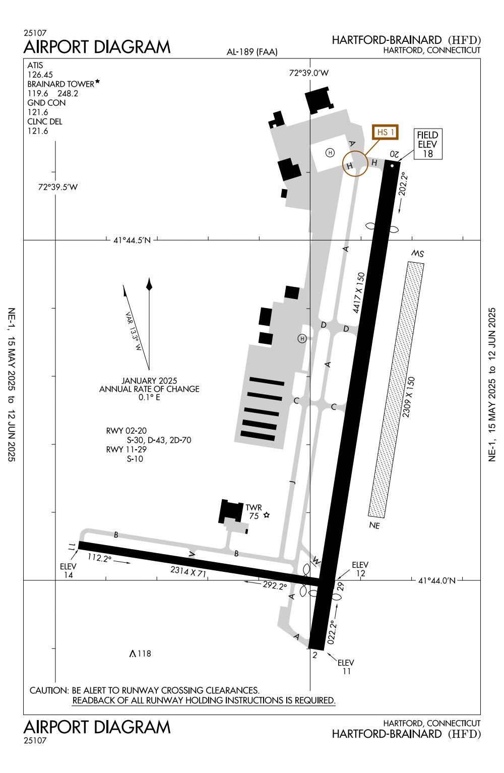 ICAO - KHFD, IATA - HFD, FAA ID - HFD