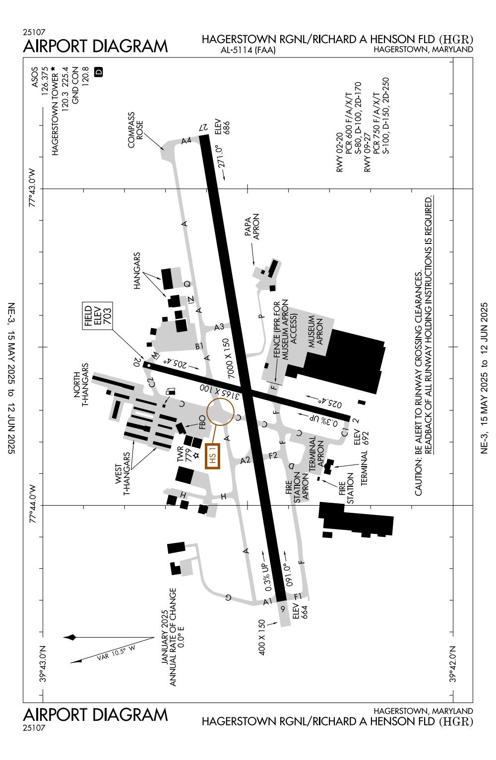 ICAO - KHGR, IATA - HGR, FAA ID - HGR