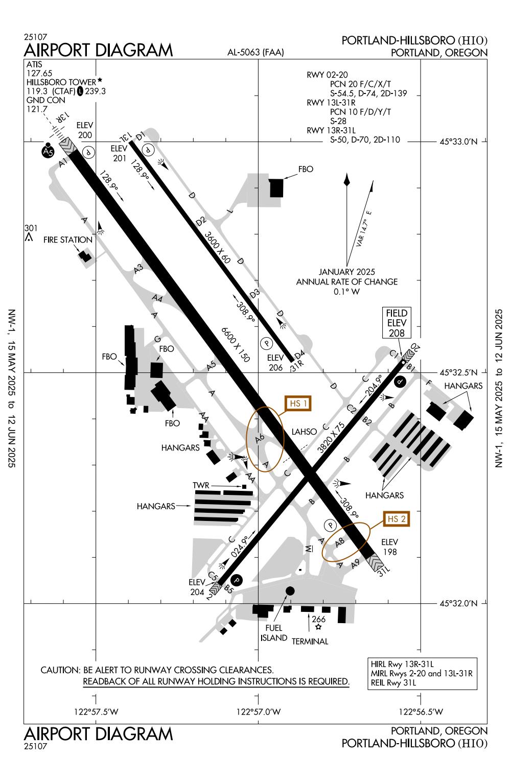 ICAO - KHIO, IATA - HIO, FAA ID - HIO