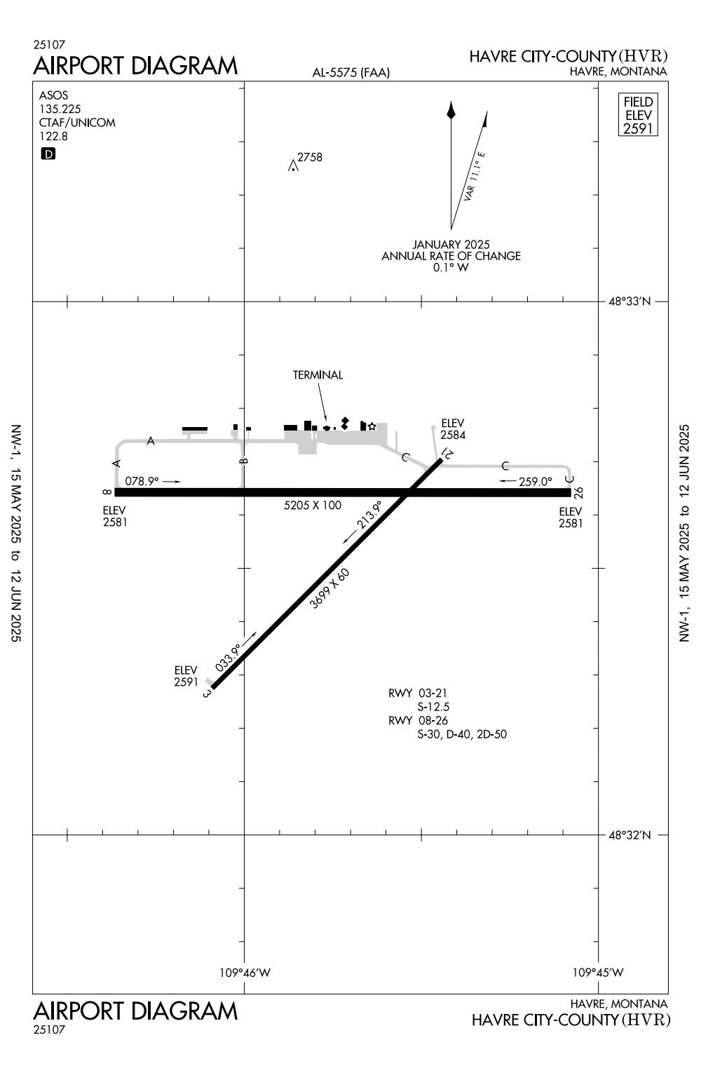 ICAO - KHVR, IATA - HVR, FAA ID - HVR