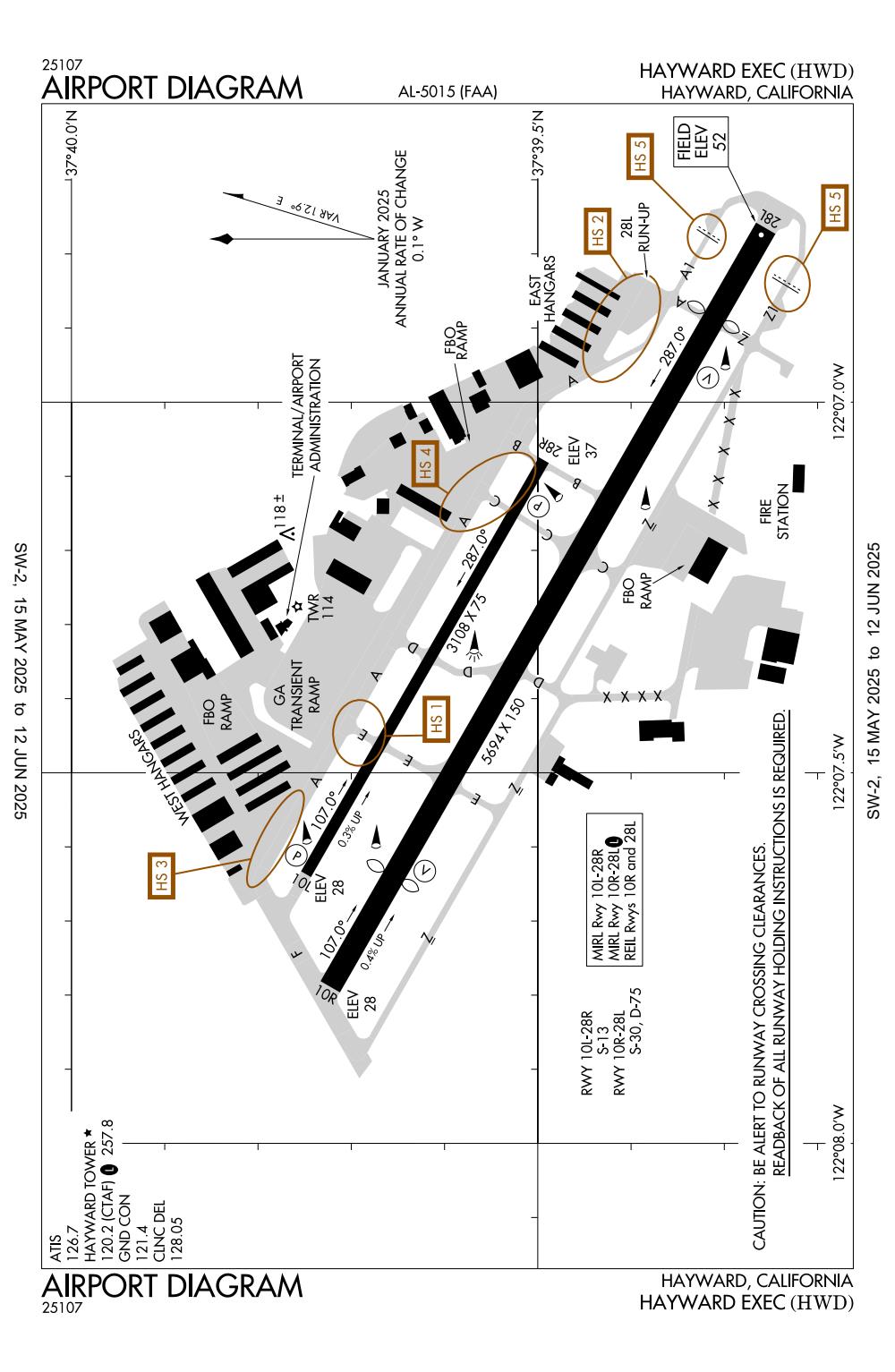 ICAO - KHWD, IATA - HWD, FAA ID - HWD