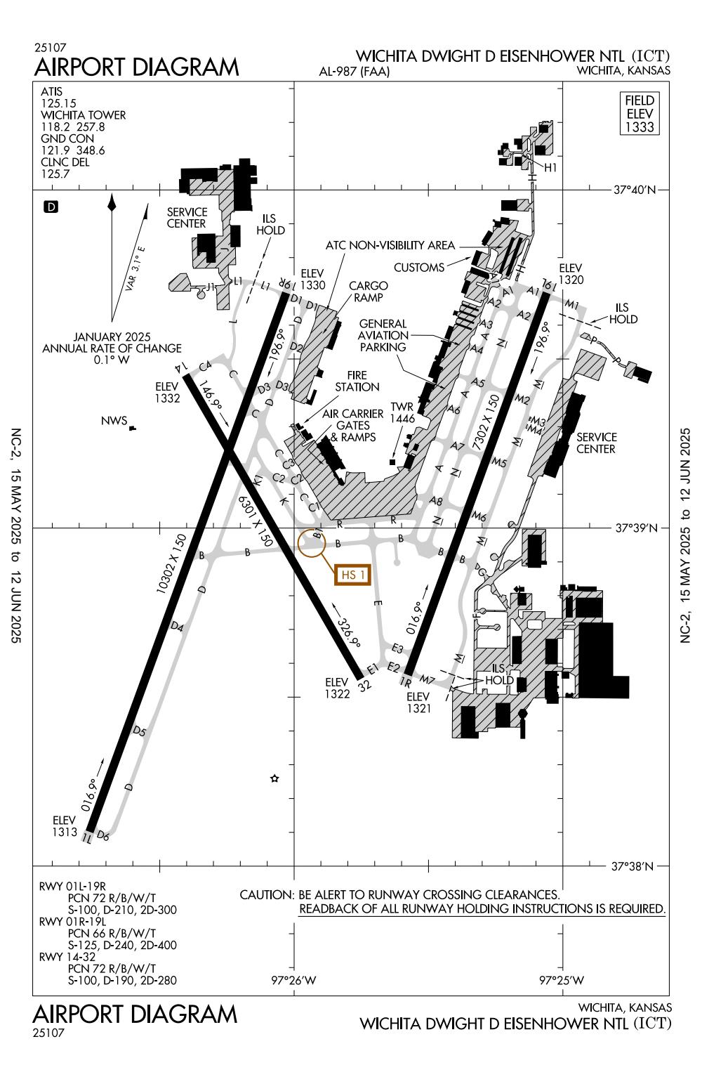 ICAO - KICT, IATA - ICT, FAA ID - ICT
