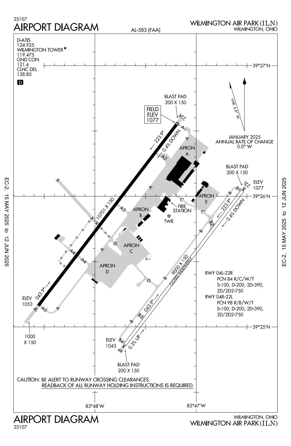 ICAO - KILN, IATA - ILN, FAA ID - ILN