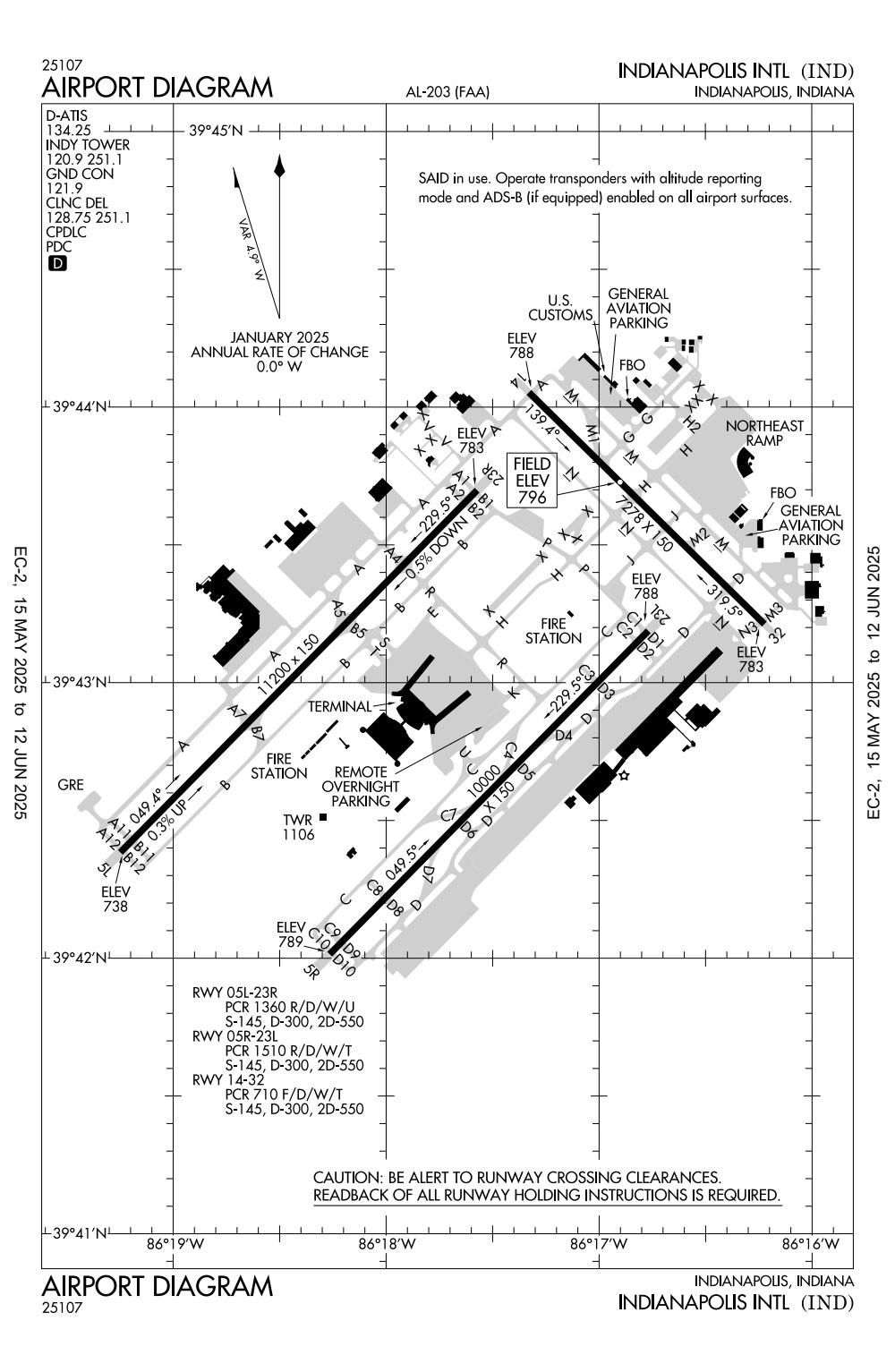 ICAO - KIND, IATA - IND, FAA ID - IND