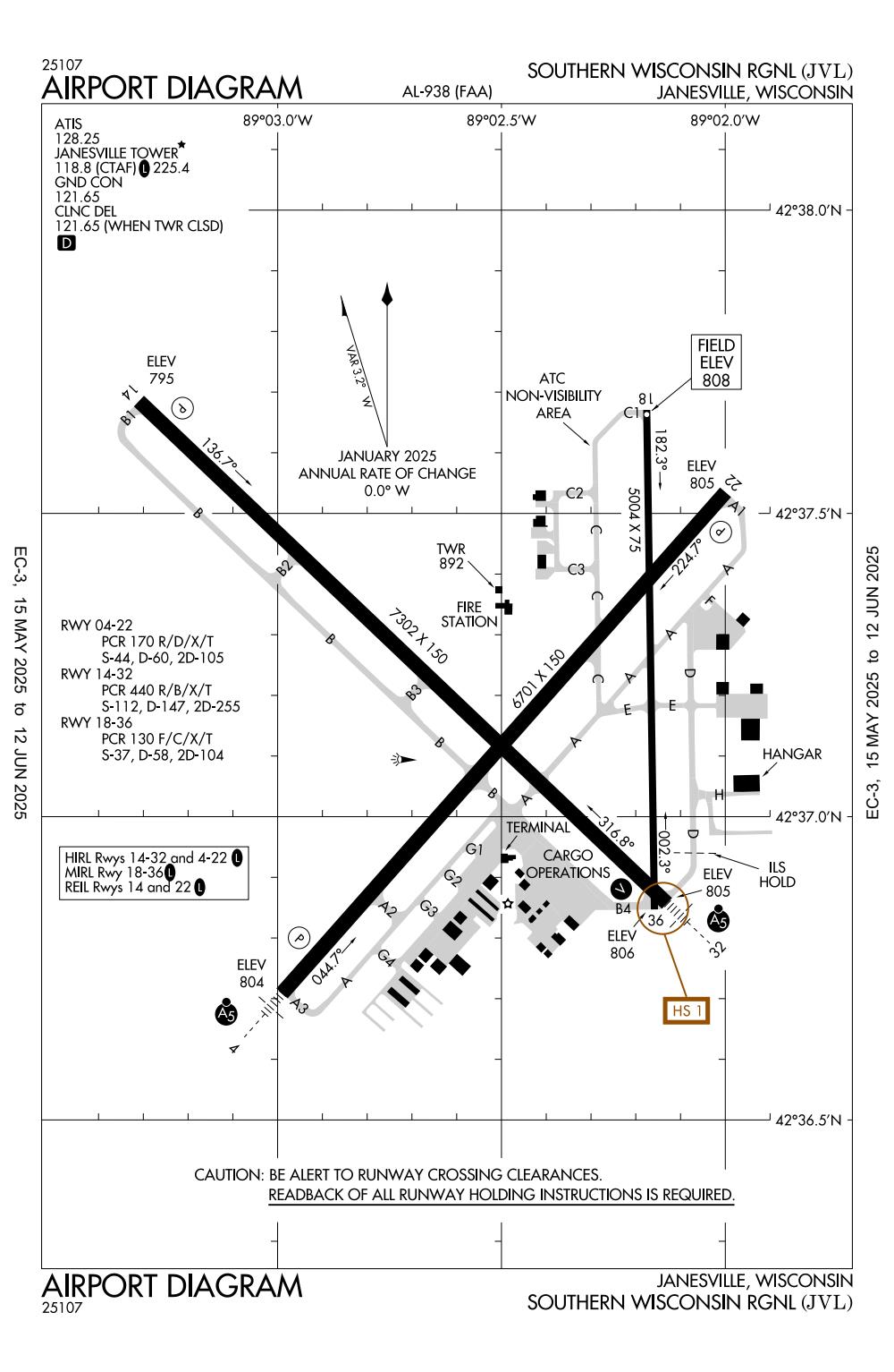 ICAO - KJVL, IATA - JVL, FAA ID - JVL