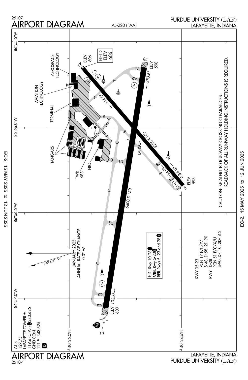 ICAO - KLAF, IATA - LAF, FAA ID - LAF