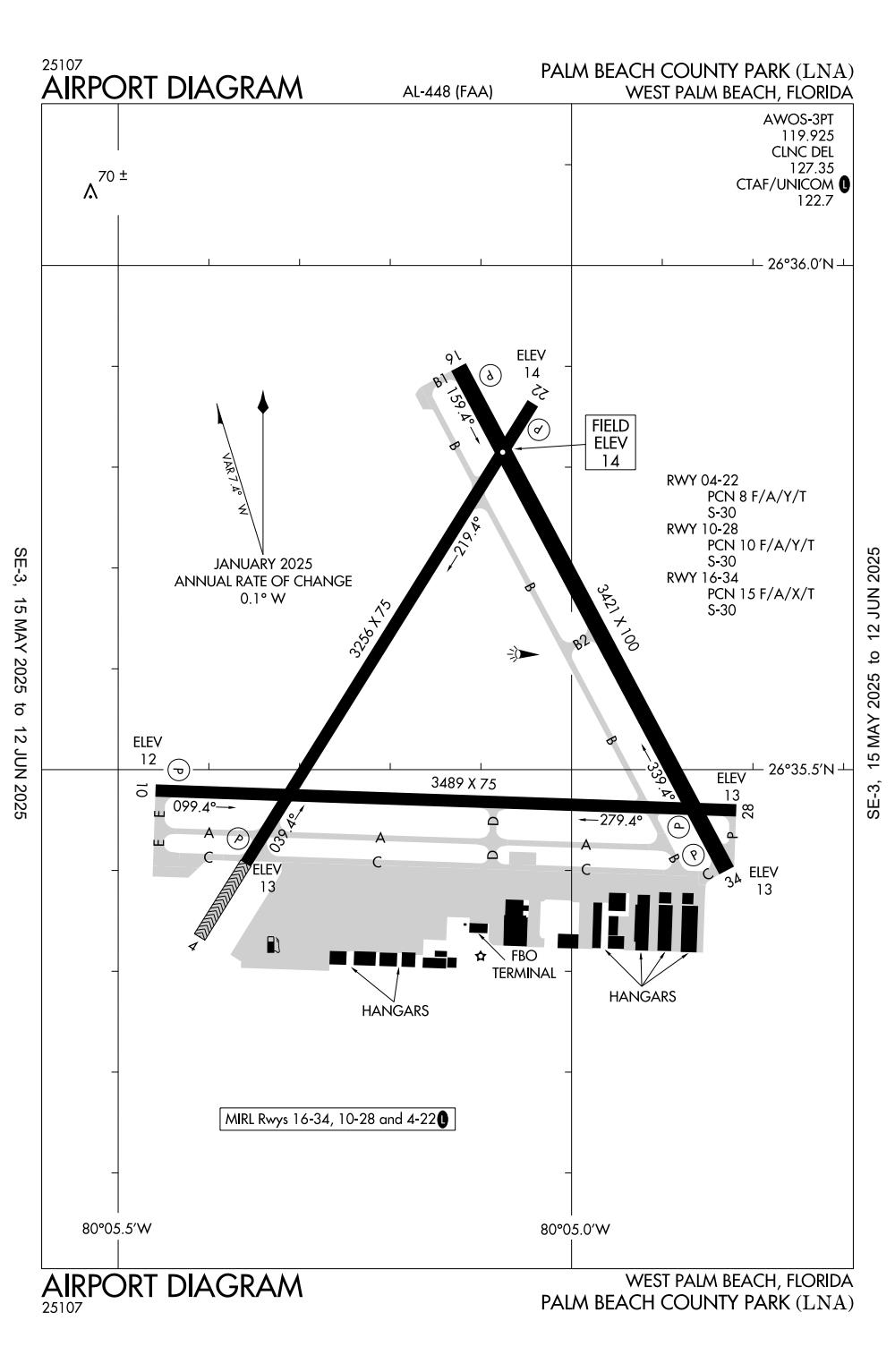 ICAO - KLNA, IATA - LNA, FAA ID - LNA