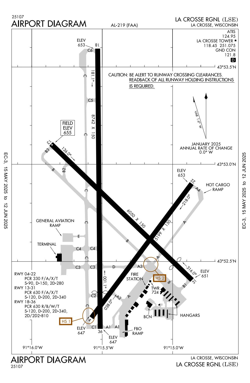 ICAO - KLSE, IATA - LSE, FAA ID - LSE