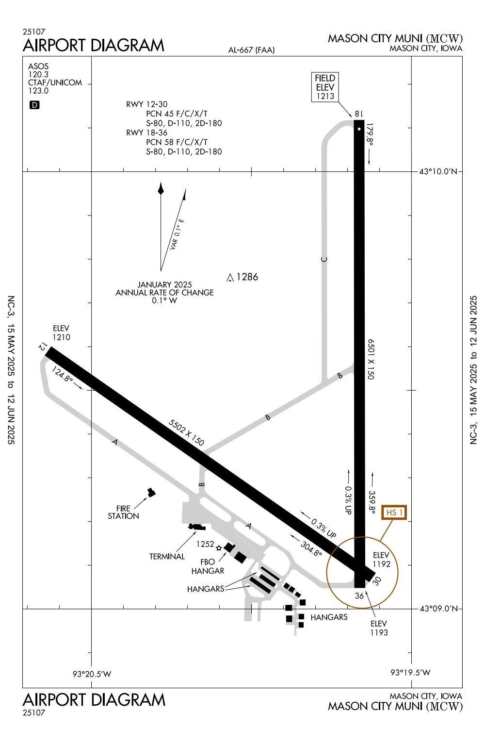 ICAO - KMCW, IATA - MCW, FAA ID - MCW