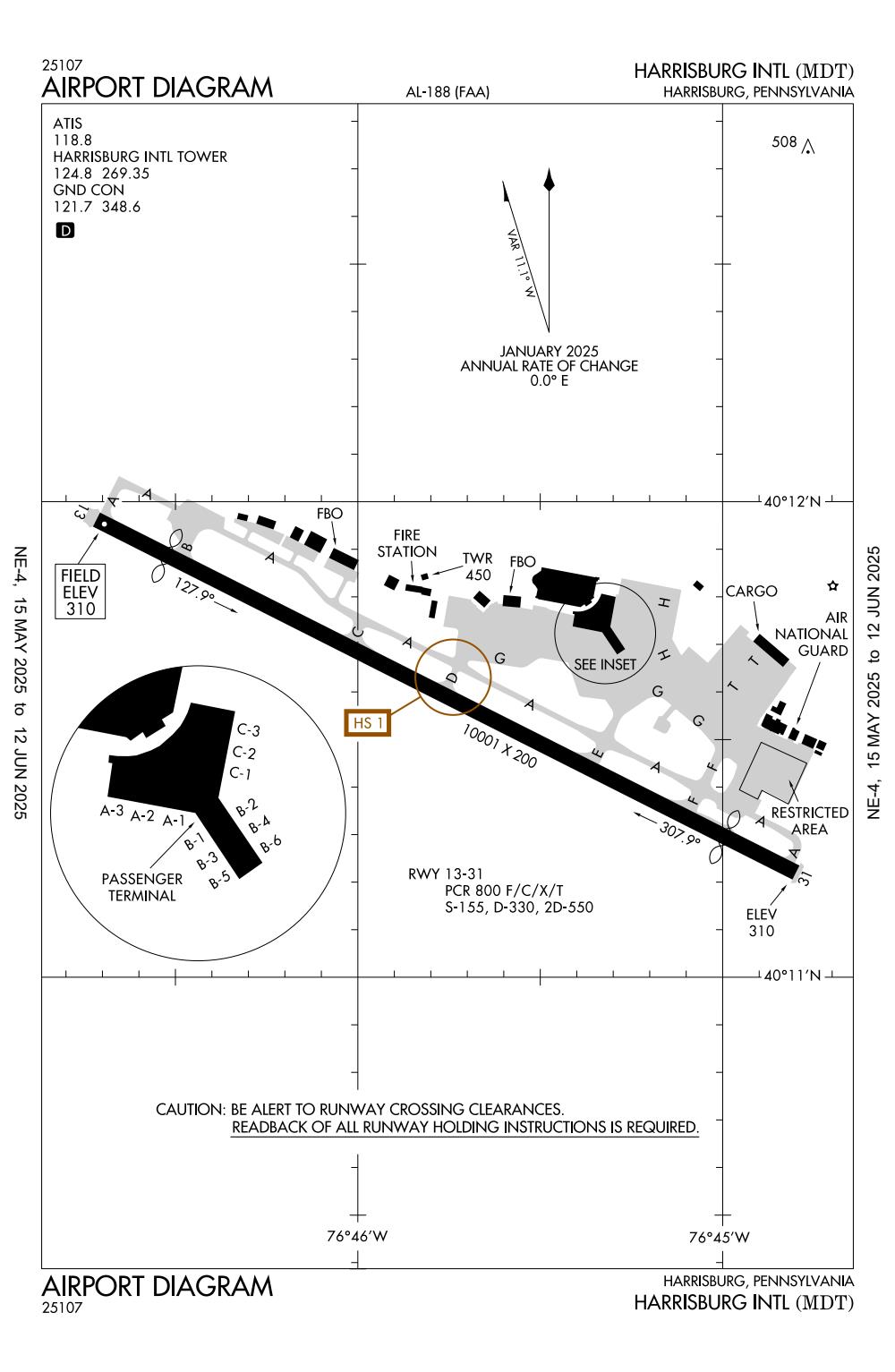 ICAO - KMDT, IATA - MDT, FAA ID - MDT