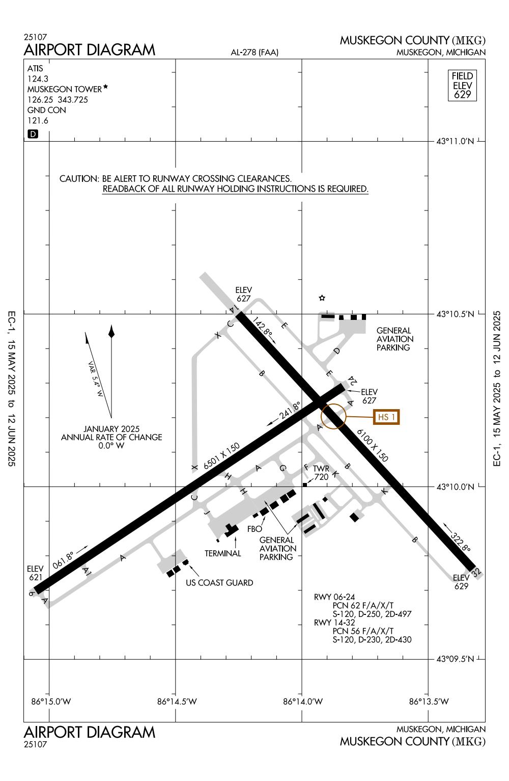ICAO - KMKG, IATA - MKG, FAA ID - MKG