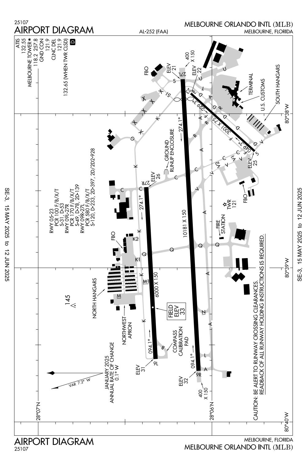 ICAO - KMLB, IATA - MLB, FAA ID - MLB