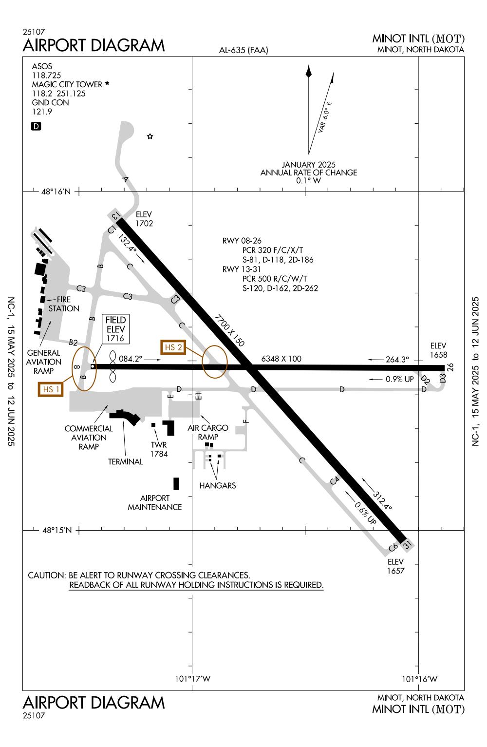 ICAO - KMOT, IATA - MOT, FAA ID - MOT