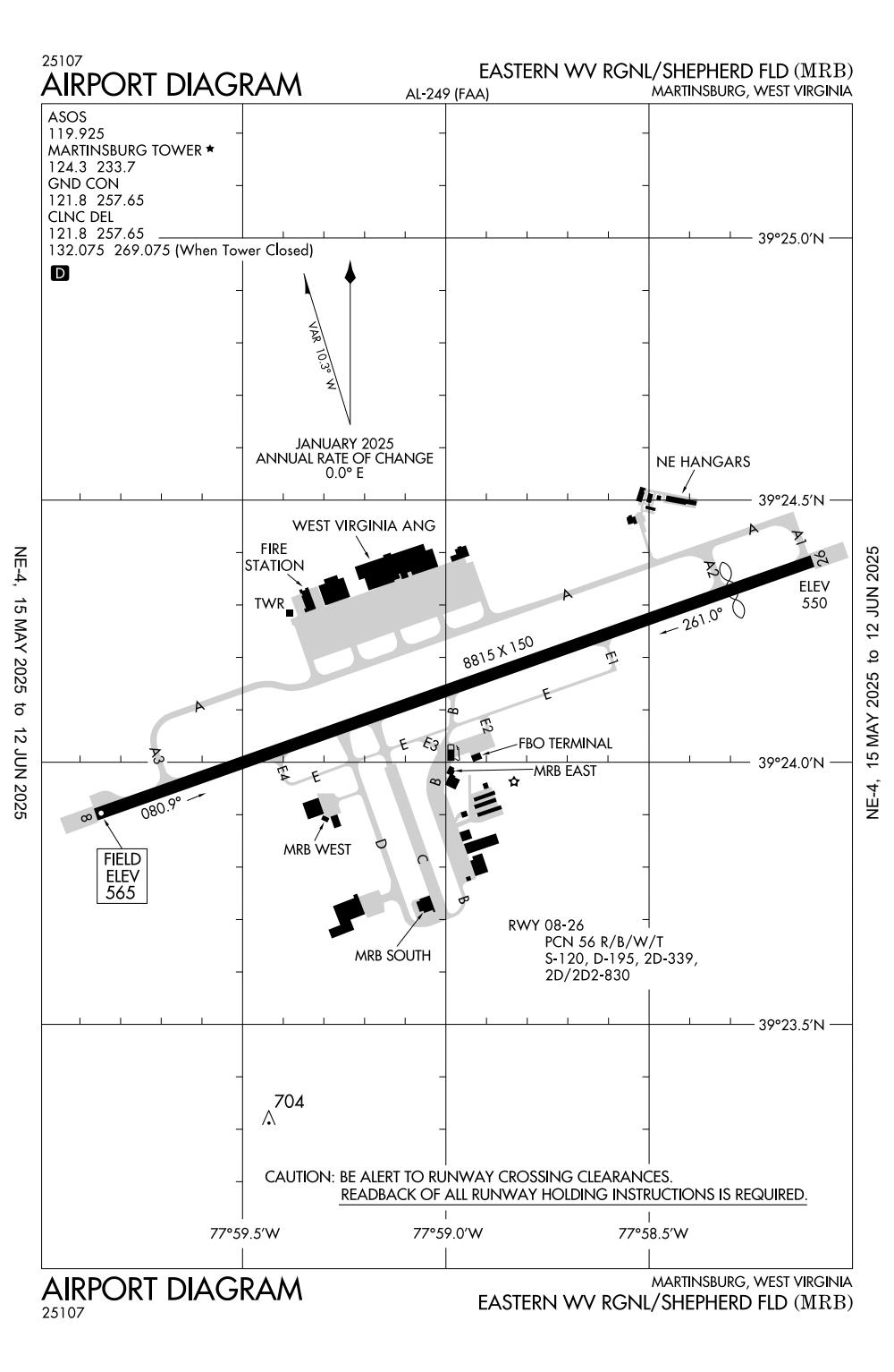 ICAO - KMRB, IATA - MRB, FAA ID - MRB