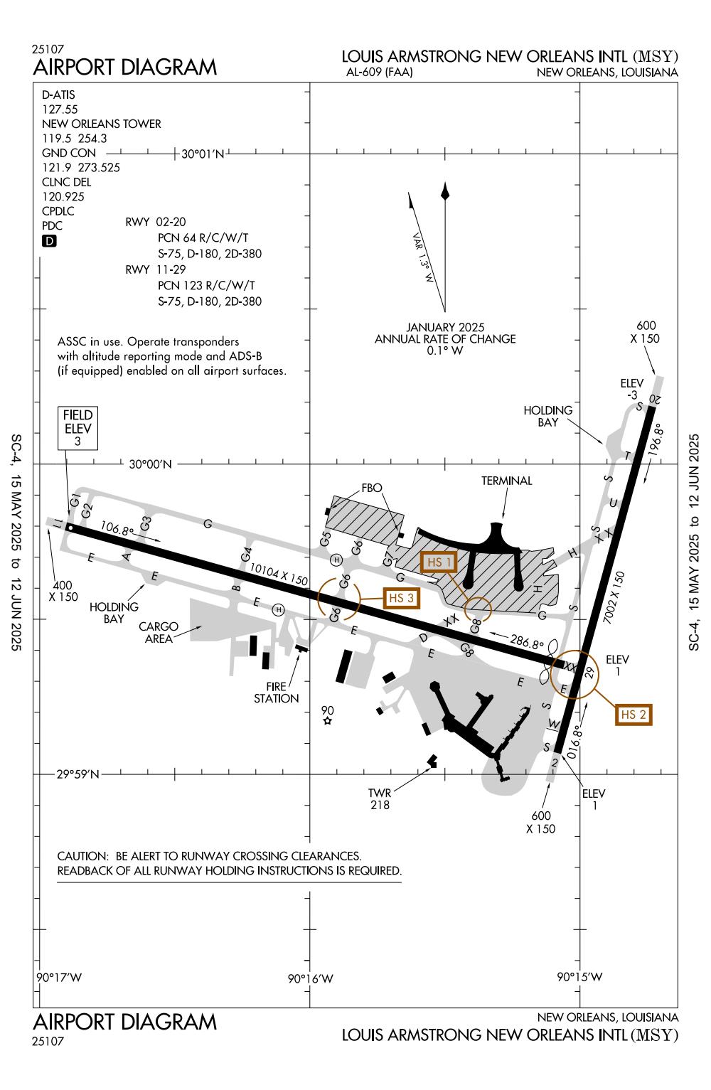 ICAO - KMSY, IATA - MSY, FAA ID - MSY