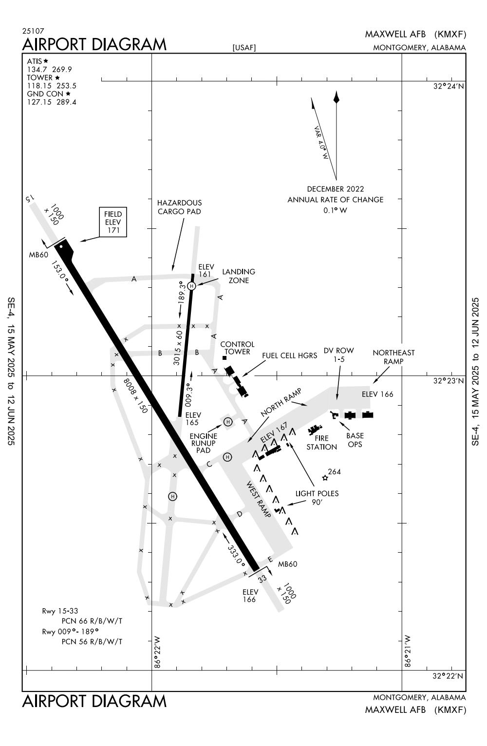 ICAO - KMXF, IATA - MXF, FAA ID - MXF