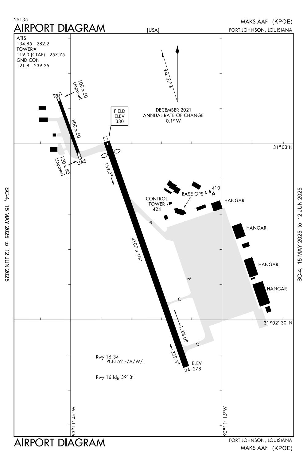 ICAO - KPOE, IATA - POE, FAA ID - POE