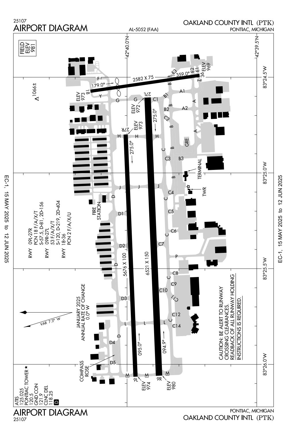 ICAO - KPTK, IATA - PTK, FAA ID - PTK