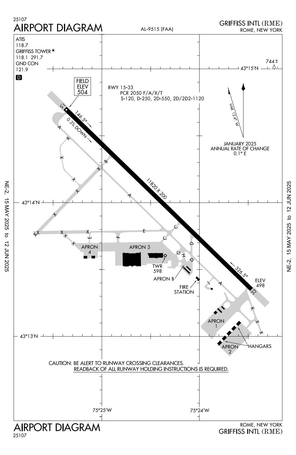 ICAO - KRME, IATA - RME, FAA ID - RME