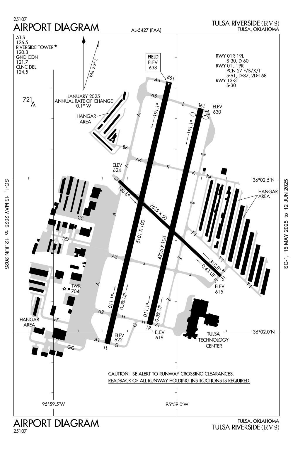 ICAO - KRVS, IATA - RVS, FAA ID - RVS