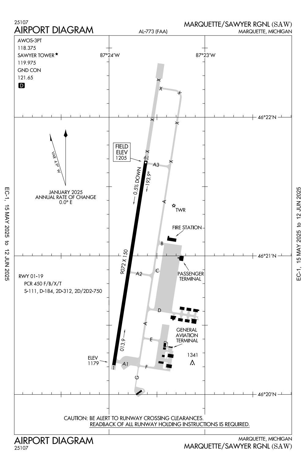 ICAO - KSAW, IATA - MQT, FAA ID - SAW