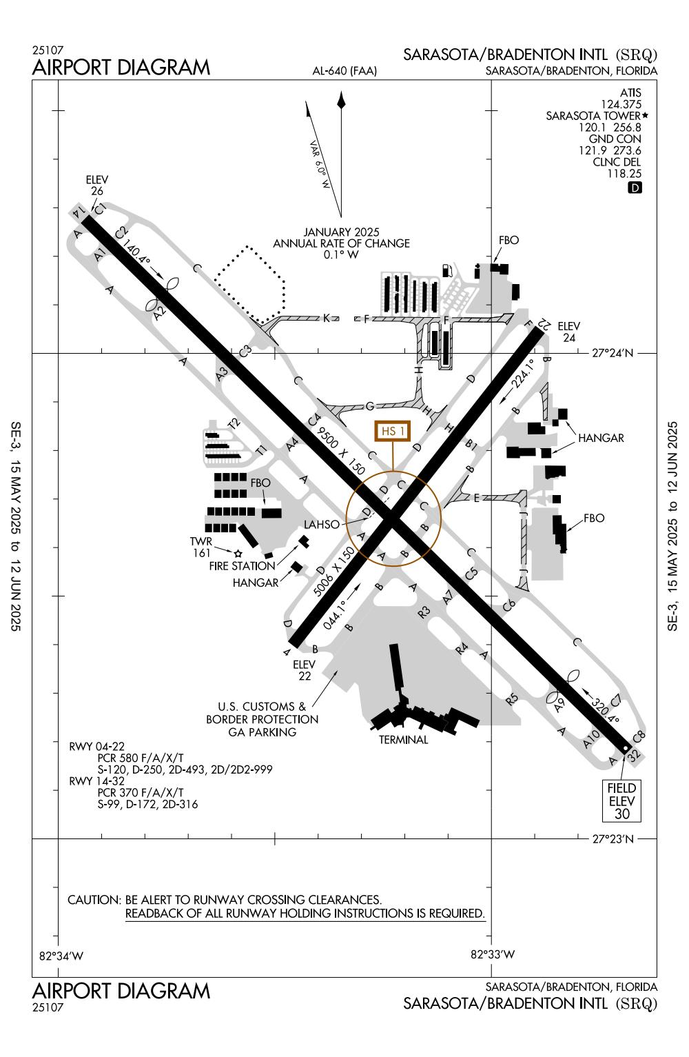 ICAO - KSRQ, IATA - SRQ, FAA ID - SRQ