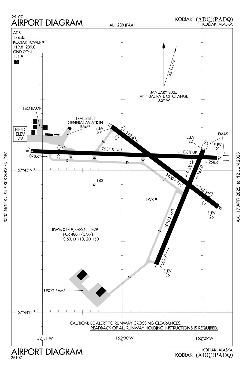 ICAO - PADQ, IATA - ADQ, FAA ID - ADQ